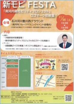 秋晴れの11月8日(土)に石川河川敷川西グラウンドで開催された「新モビFESTA」の中で、ロゴ発表があり、本学デザイン学科3年生の堀江志歩さんの作品が選ばれて出席しました。